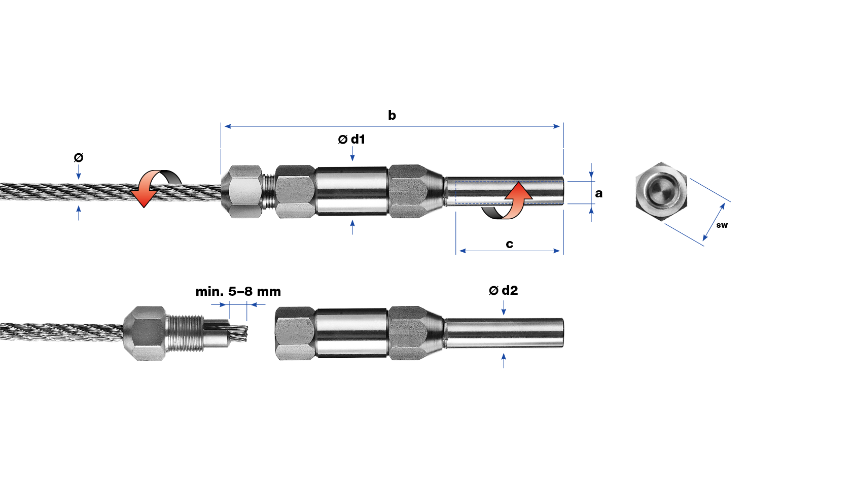 | Variante | SKU | Diamètre | Filetage | Rupture | Traction | b | c | Ød1 | Ød2 | sw | Stock | Prix | Quantité |