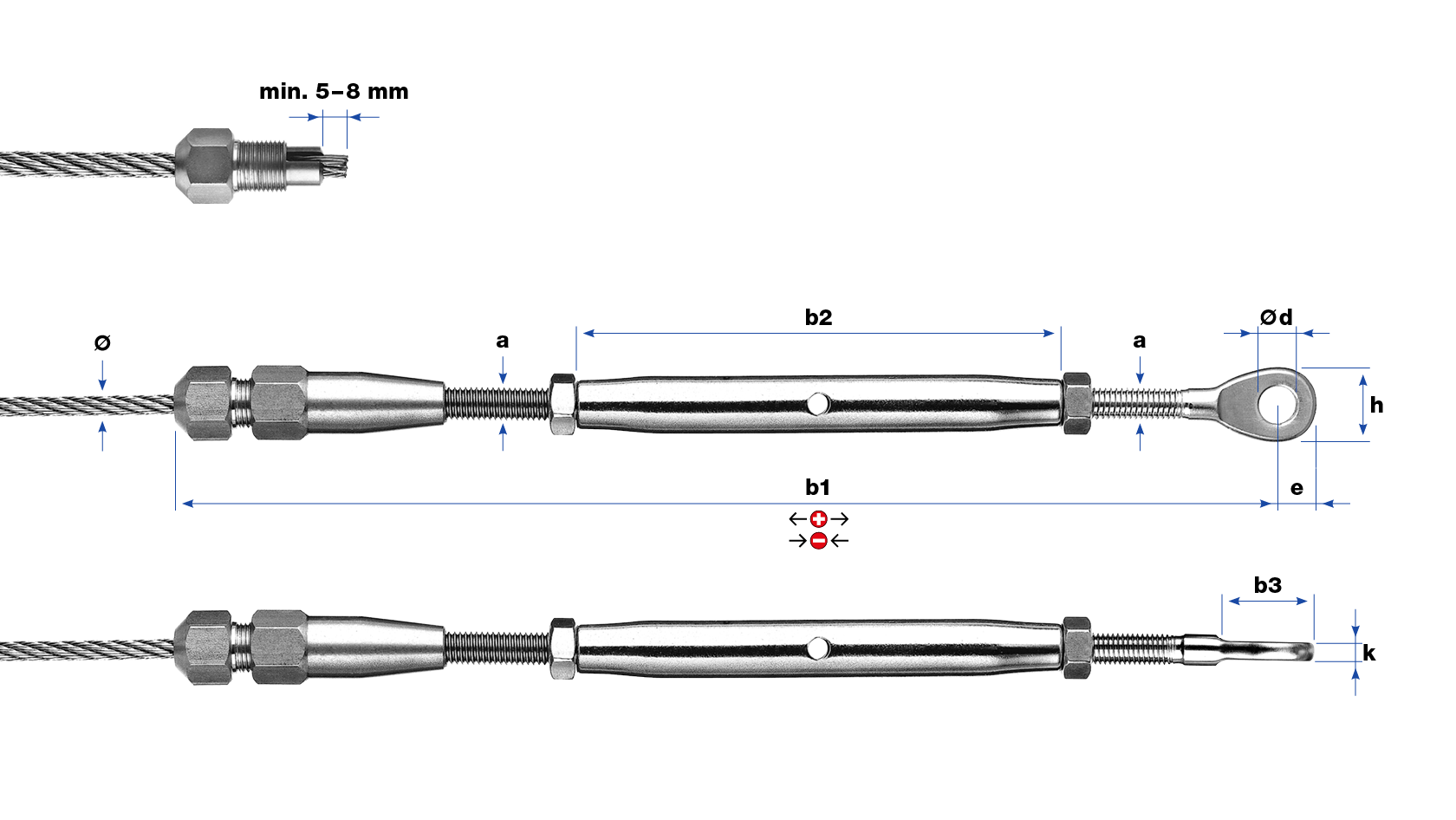 | Variante | SKU | Diamètre | b1 | b2 | b3 | Ød | e | h | k | Course + | Course - | Stock | Prix | Quantité |